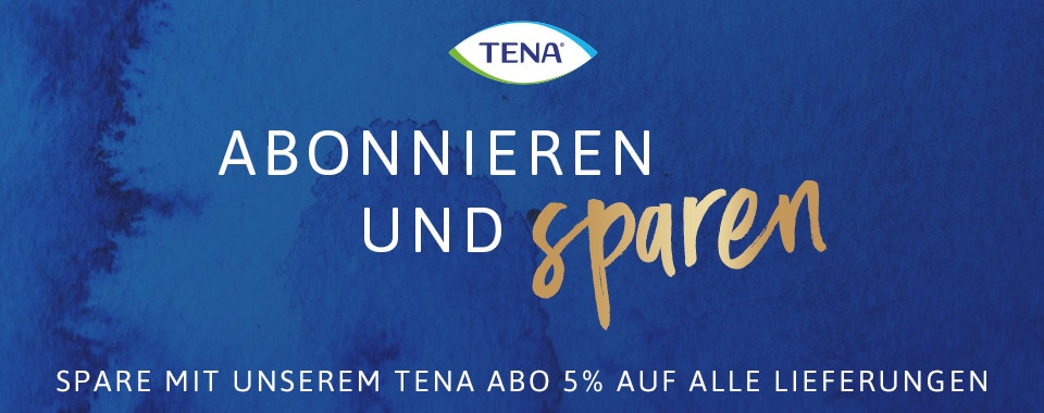 Du bestellst deine Lieblingsprodukte von TENA regelmäßig in unserem Webshop? Prima! Dann profitiere jetzt von unserem TENA Abo – und spare dauerhaft 5 % bei jeder Lieferung. Wir kümmern uns zuverlässig darum, dass du deine TENA Produkte im gewünschten Versandintervall nach Hause geliefert bekommst. So bist du immer optimal versorgt und musst dir keine Sorgen machen, dass dir deine TENA Produkte ausgehen. Mit einem TENA Abo bleibst du völlig flexibel. Du kannst das Abo jederzeit in deinem Kundenkonto anpassen oder kündigen.